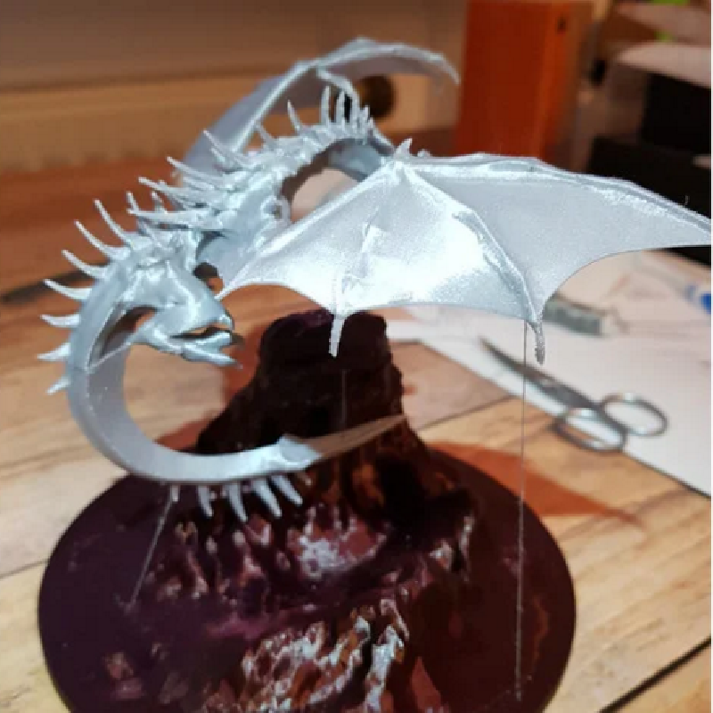 I printed it at 150% scale and used CA glue to assemble the dragon. For connecting the thread to the parts, I recommend this order using a tiny drop of CA glue:
