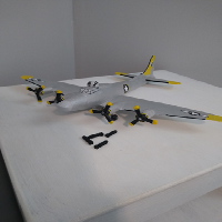 This is a model of a B-17 Bomber with rotating turrets, working landing gear, spinning propellers and a operational bomb bay.