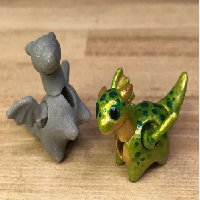 Roughly 5cm from nose to tail, this tiny dragon can be strung together with mini hair elastics, or your choice of thin elastic cord. A nice size for doll houses, hiding in Easter eggs, or keeping you company at your desk.
