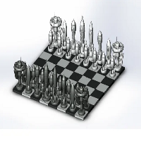 "Rocket chess" is an one of a kind chess pieces collection featuring some of my favourite rocket designs. I have tried to mach the shapes and sizes to the classic pieces as much as possible (I had as reference the large size) and are scaled to mach 3cm by 3cm tiles (as featured in the photos).