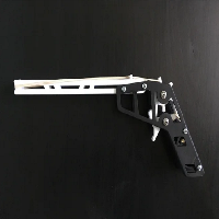 Hello. This is a remix of Gavilan's excellent design. I made the gun quite a bit larger for adults, fixed the trigger, so it releases rubberbands flawlessly (Gavilan's design would catch), added a pocket in the grip for extra rubberbands, extended the barrel to shoot Alliance Rubber 54325 Advantage Rubber Bands Size #32, and made the barrel better with a sight on it. The rubberband connecting the trigger is the same size. I also added hardware to keep the wheel centered and solid, and the trigger easier to install among other fixes. I hope you enjoy!