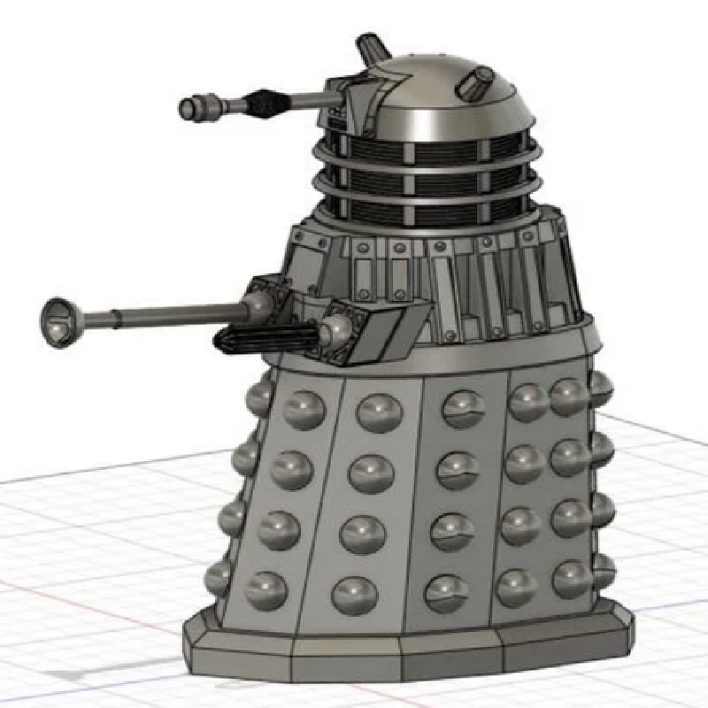 This 3D printable puzzle Dalek has 3 stages to be completed before the head gets unlocked and you can pull it off to find the secret item inside! There are three stages to be completed in any order: A button to be pushed, a knob to be turned, and an RFID tag to be read. One of the LED's on the head of the Dalek will light up after each task is completed. Once all three tasks are completed and therefore all 3 LED's are on, a servo will unlock the head from the body and you can take the head off which is attached to a "cage" that contains the item.