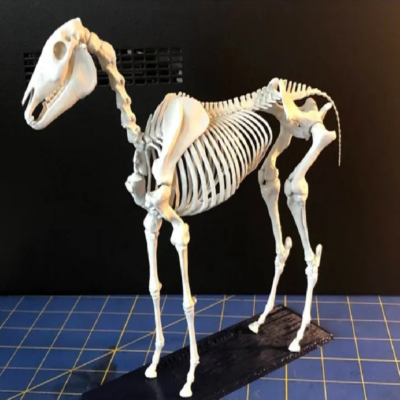 The original model was created by Diego Luján García and is available on Sketchfab (https://sketchfab.com/3d-models/horse-skeleton-eaca504567604e879b8ab2cf2763025e) The modifications I made to make the model printable and to add the pin and socket joints were done in Meshmixer. The base was designed in Sketchup.