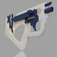 This is a WORK IN PROGRESS. Print at your own risk (of wasting filament). This works by loading bands from a square magazine onto a catch connected to a bolt. When you pull the trigger the band on the catch pulls the bolt forward and releases the band, then another band pulls the bolt back where the catch hits a shoe allowing the magazine to rotate a quarter turn. A spring pushing against the shoe resets the catch. So with this design the bolt should cycle making a great sound and the auto should be delayed enough that they all don't just 'buzz off' the wheel all at once like other auto deigns.