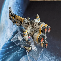 X-Wing epic scale model of the Hammerhead Corvette as seen in Rogue One. Proportions have been skewed slightly but I think the overall shape reads well. I used Nicholas Sagan's amazing 1/600 Lightmaker model for the bulk of my reference.
