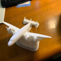 I tried to print the original model on this Super Constellation and the engines would not print. I finally decided to take the model into Blender and found the props and the spinner were just free standing (floating) with no attachment. I also couldn't print the propellers due to their Thin size. After several days I finally was able to get the model to fully print (I had to totally take the model apart, move the parts and preform the union action of the model). Due to the size of my printer I had to print at 1/4 size at a 45 degree tilt on its tail with tree support in Cura. I tried to print on the nose and just not enough support
