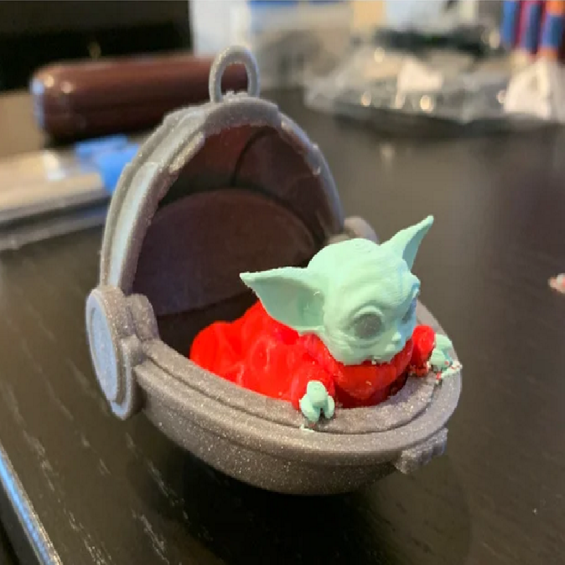 Remix of Grogu Baby Yoda with Pram Ornament for multi color printing. Used MeshMixer for splitting the areas.