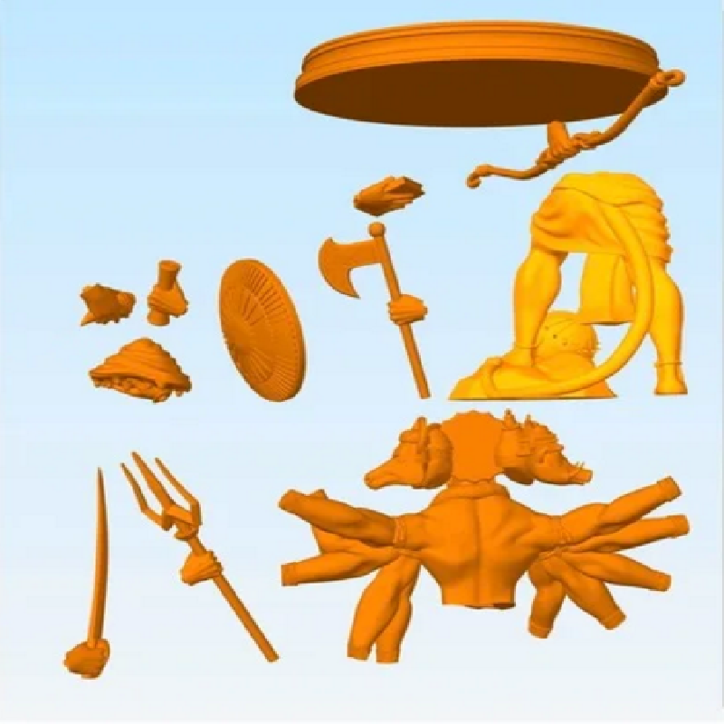 An Original 3D Sculpt donated to ScanHinduHeritage. The package contains THREE versions. A full figure STL with the heads facing all 360 degrees, another version with the heads facing mostly front and a split STL version for resin printing. Aligning pegs are provided for the part models for easy assembly.