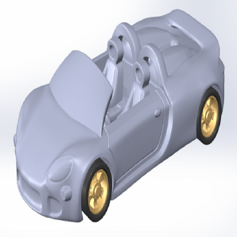 The solid mesh has undergone a few trimming treatment to facilitate axles / new wheels inclusion. Tires and wheels were made from scratch, and were tailored to fit into the car body.