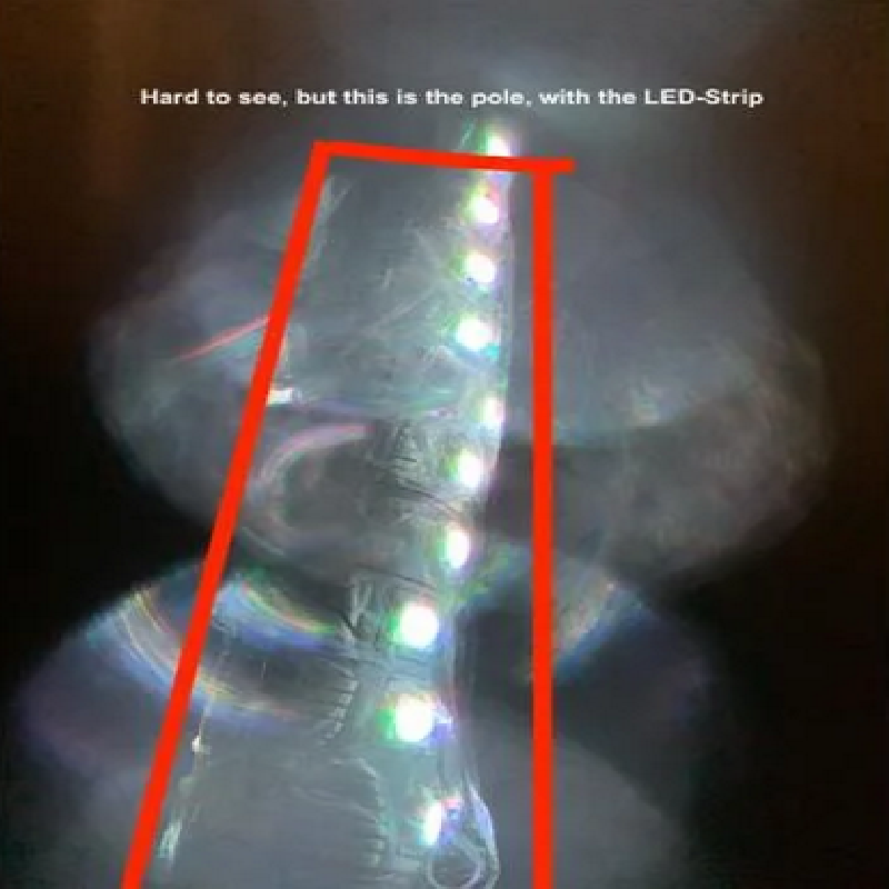 I have constructed a pole for the inner part, to which the LED strips can then be attached. There is also a compartment at the top for the battery and switch.