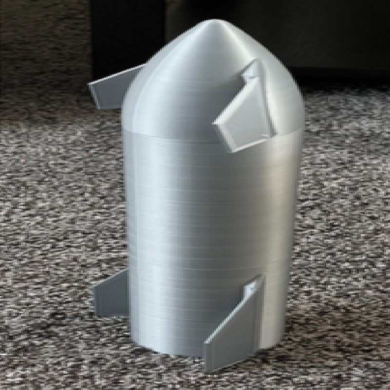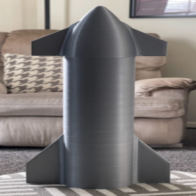 Print your own 1:100 scale Starship prototype! Modeled after the SN8, SN9, SN10, and SN11 series. Modeled in Fusion360 using dimensions from Rafael Adamy (@fael097)'s awesome SN8 blueprint.