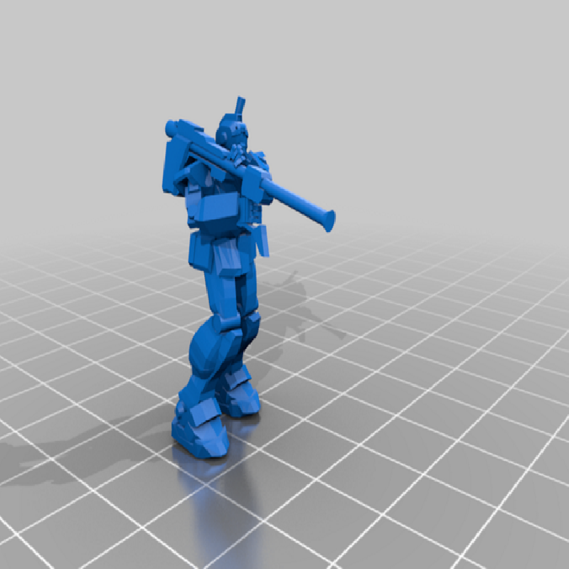 Three poses of the redoubtable RGM-79 mobile suit fielded in the one year war as depicted in Mobile Suit gundam. scaled to 1/400 scale for table top gaming