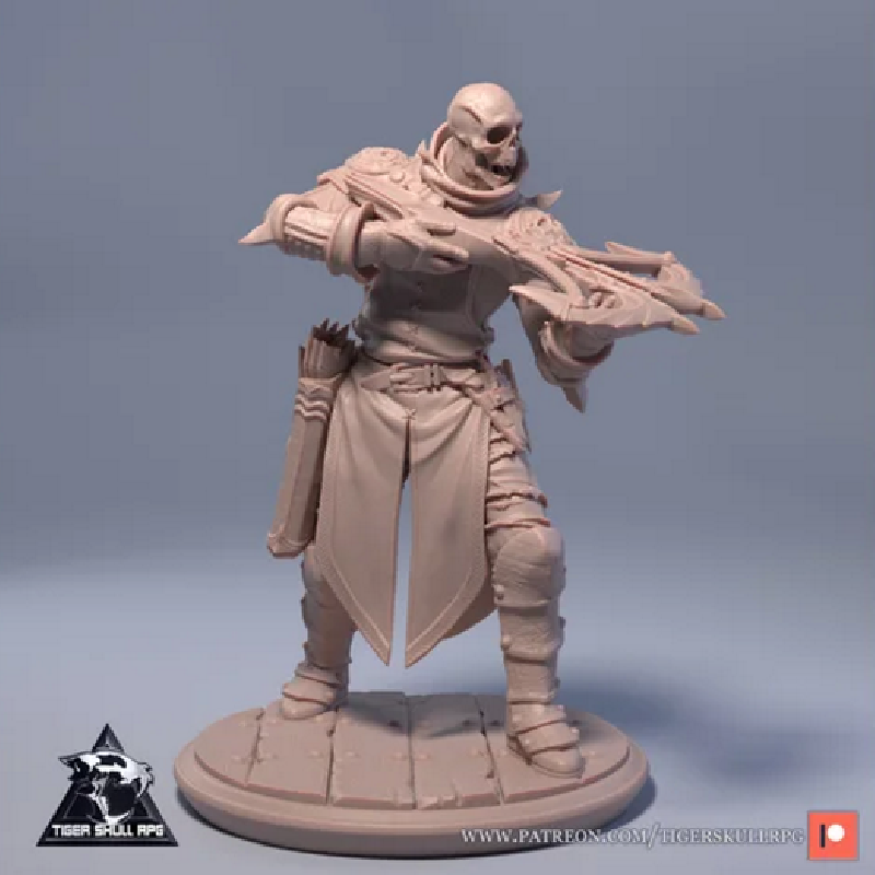 Please enjoy this sample Figure from Tiger Skull RPG's Marksmen of Cursed Death release. This is taken from a squad for four ranged skeletons as seen in the image in blue.