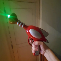 It's enabled to insert a 3mm LED in the front and use the trigger with a push-button and a 9v battery in the grip.