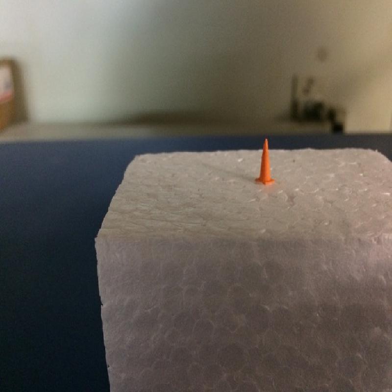 This is a 28" traffic cone modeled full size and scaled down to HO (1/87) scale in Geomagic Design. The STL file is HO scale. I printed it on my Dremel Idea Builder in white PLA and then painted it. If you look at the photo you can see where the detail gets a bit sloppy towards the top.