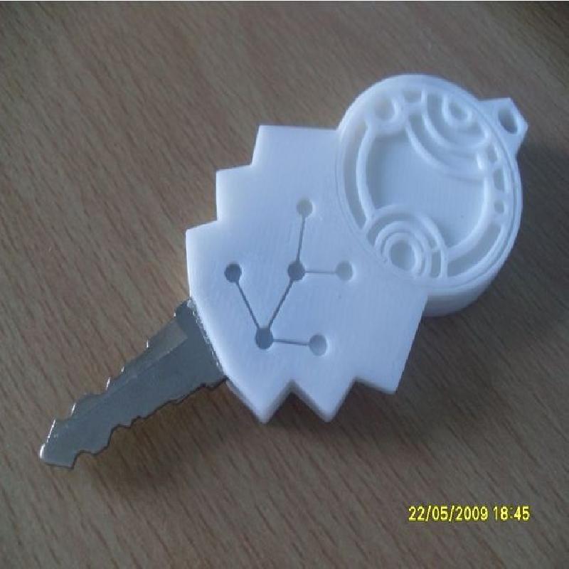 This model was designed to fit around a normal key, making it a functioning TARDIS key.