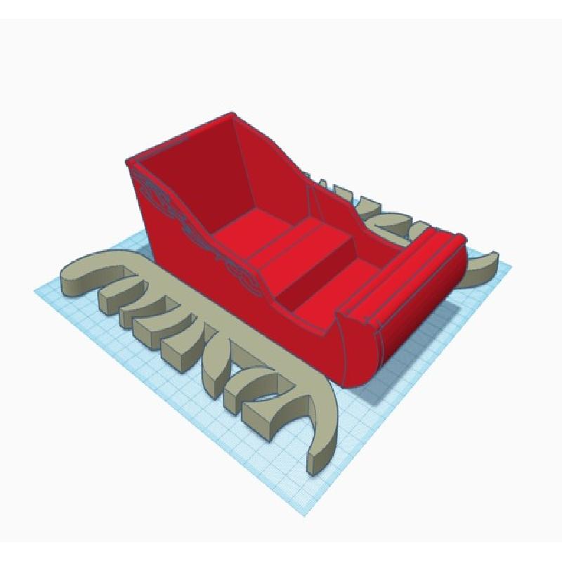 I removed the middle bar, resized the sleigh. I flattened the rails a bit and resized them. I used Tinkercad