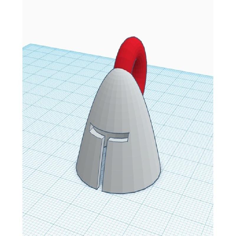 a helmet designed in tinkercad, fooling around with subrtraction of basic objects. probably should be printed with support structures.