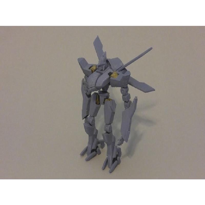 The Shinkiro mech from the anime Code Geass. Unlike the previous two mech models I made; this one does not use ball and socket joints. I designed new joints that uses a piece of 1.75mm filament to keep it together at the pivot (labeled Test Joint V 3 in the stls) and use flexible filament to print out the portion that the pivot swivels on (labeled Test Joint V 3.1). The Arms, Legs, Thighs, Shoulders, Hands and Toes all need to be printed twice, and the wings four times. The stl Test Joint V 3.1 and the neck need to be printed in a flexible filament, everything else can be printed in PLA or ABS. The stl Test Joint V 3.1 needs to be printed 28 times, the stl Test Joint v 3 will need to be printed 9 times and the stl Test Joint V 3.2 will need to be printed twice.