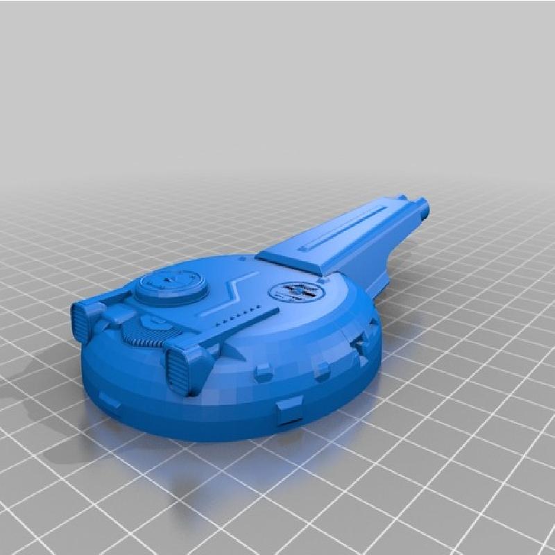 SiegeTankBody. This is a whole body that is not split into halves for printing purposes. Also, all theese models are not netfabbed. Model was done without open edges (all the elements are watertight), but there are polygons that uses the same space, intersections and things alike.
