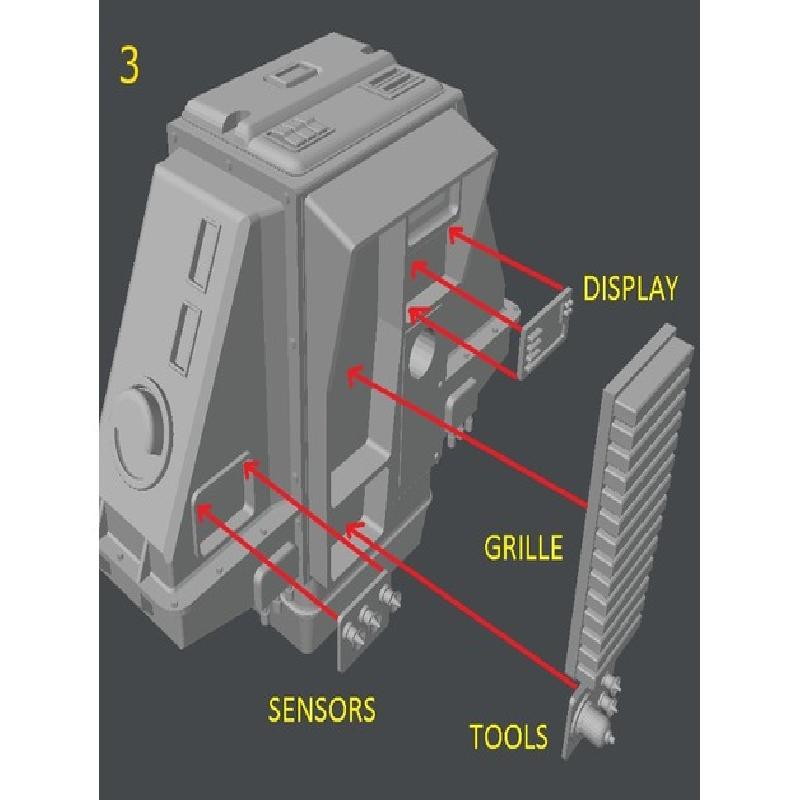 (3) Glue the rest of the front pieces: The grille,display,tool and sensor panels.