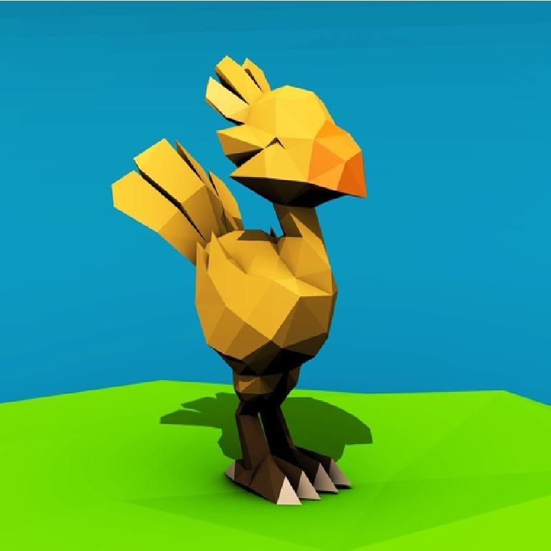 A low poly chocobo. Not modeled after any specific iteration of the chocobo, bit of a mix of few different ones.