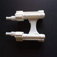 Assembly is fairly direct, Left and right hand-grips go together, and then have tabs that slot into the main body, the two muzzle halves fit together and then fit to the front (the end with the reinforcing bar of the main body. The butt fits flush to the back of the gun, The barrel and laser tip have location pegs for assembly