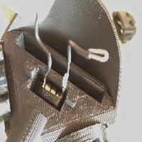 The legs slide in from the back and can be positioned wherever you need so that it can easily stand with cards and pencils in his back. When there's nothing in his back he will be front heavy so you can slide the legs forward etc.