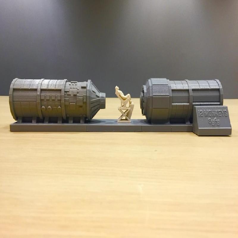 This is a complete user assembled model of the Time Machine as seen in the Syfy Original Series, 12 Monkeys. Model parts include the main characters James Cole and Cassandra Railly.