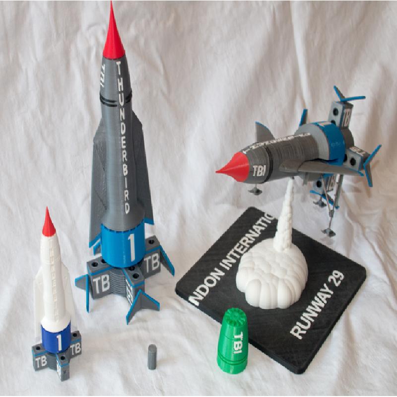 I've provided clearance for the letters and numbers, so they should just press fit, but may need a needle file taking to the edges. Note the side of the letters that was against the print bed goes bottom down in the model. Also note the letters are contoured on the top, so match thicker parts to deeper holes. Keeping the sets of "TB" and "TB1" separate in small boxes helps. Also note that "Thunderbird" has two Rs and two Ds in it and they need to go into the right holes!