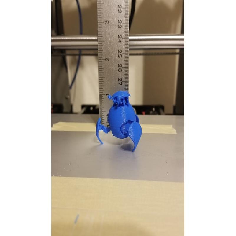 Tiny little robot model that I created. Since printing the model in the images I have thickend and increased the number of eye stocks to four. Use high fan and semi slow speeds, high fan, and at least 20% supports. I used line supports since they are the easiest to remove.
