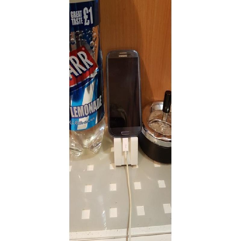 This phone stand is designed to hold your phone whilst being able to charge it with a standard USB charging cable, I recommend adding some non-slip pads to the underneath of this stand.