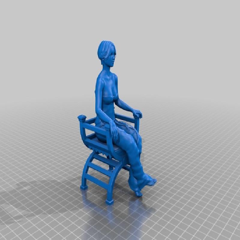 Young girl is sitting on a chair. Junge Frau sitzt auf einem Stuhl.