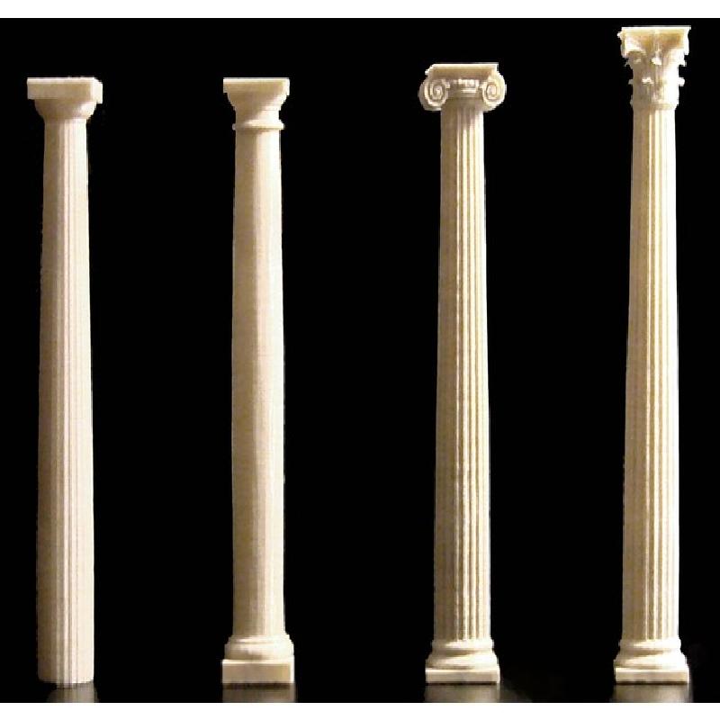 All the columns are designed with correct 'entasis', (the gentle convex curve along the shaft,) and the name of each order is embossed into the base of each column.