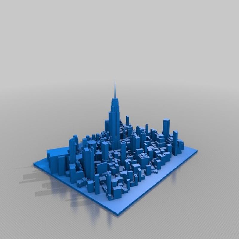 A quite large export from Open Street Map around the area of the Empire state building. See the photo for a 2 hour, small print with 0.35 Layer height. It could be interesting to see it printet larger by others!