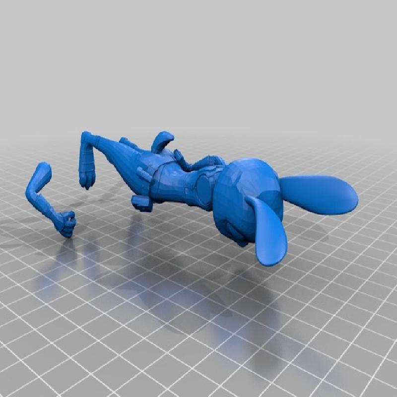 Due to a lack of structural integrity, it was necessary to print the left arm separately from the body. However, it only takes a dot of glue to secure the arm back onto the body.
