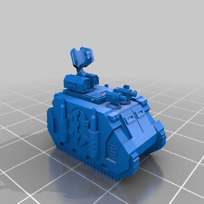The Mark 1C 'Deimos' pattern Rhino is a popular alternative to the Chimera APC, having more robust drive systems, requiring less crew and being equipped to carry power-armoured troops.
