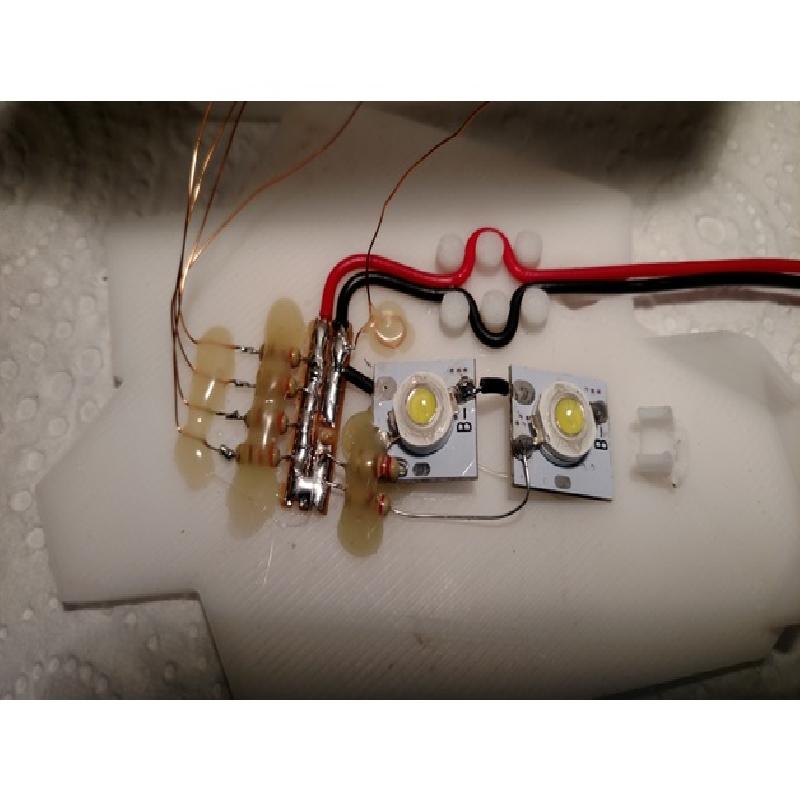 Low-Poly Bunny Lamp, modified to house 5mm dia LED's for separate illumination of the eyes and ears. Other LED's mounted in the base, along with an cable exit and strain relief.
