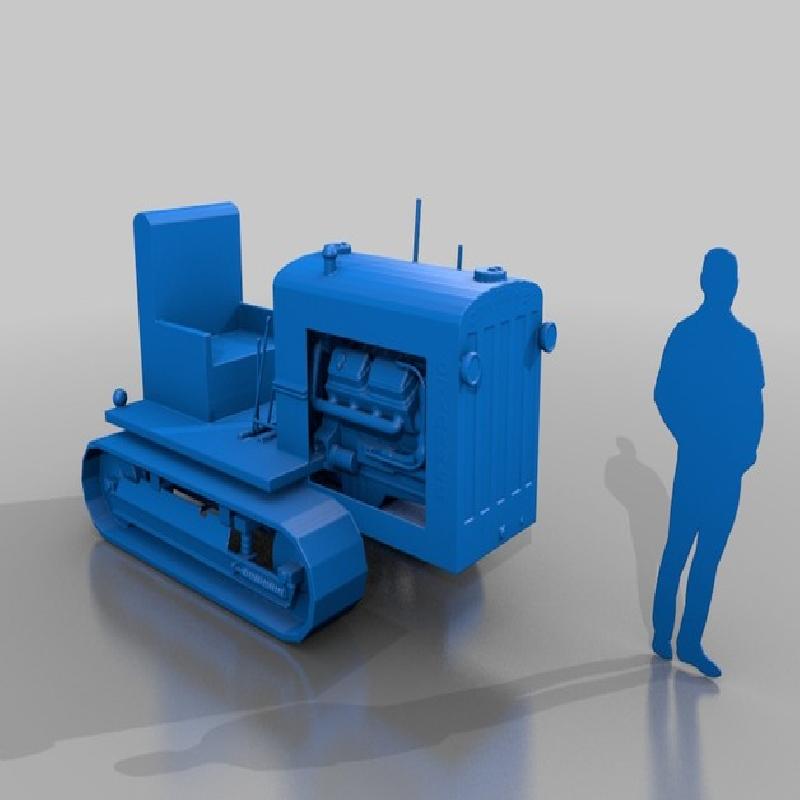 From the file vault is this 1937 Stalinetz S-65 Tractor. I didn't design it at all, I've only converted it to STL format for printing, then repaired it and scaled it way up. The cut-out fella standing there in the STL isn't present in the scaled up 3mf file. I wanted a big Russian tractor to add to my collection, and now YOU can make one too! The big downfall with this model is that it is lacking tread detail. I can't fix it yet and I'm really hoping that someone here will. From what I understand these tractors while very slow, were an irreplaceable part of the Red Army fleet. They were outfitted with a vast assortment of equipment both factory made and field-modified. This leaves tons of room for remixes including closed-cab variants and wood-gas conversions. I'd love to see some stuff like that!
